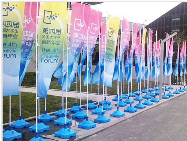 注水旗有三米注水旗、五米注水旗、七米注水3種高度。底座可輕松更換放置地點,配合可隨風(fēng)旋轉(zhuǎn)的回旋頭,可抗七大風(fēng)而不倒。 使用便捷 旗桿高度可隨意調(diào)節(jié),橫桿高度可隨旗面大小調(diào)節(jié),方便拆卸、更換。 注水旗美觀耐用,旗桿長度縮放自如,塑料注水式底座攜帶方便,安放更穩(wěn)定。
